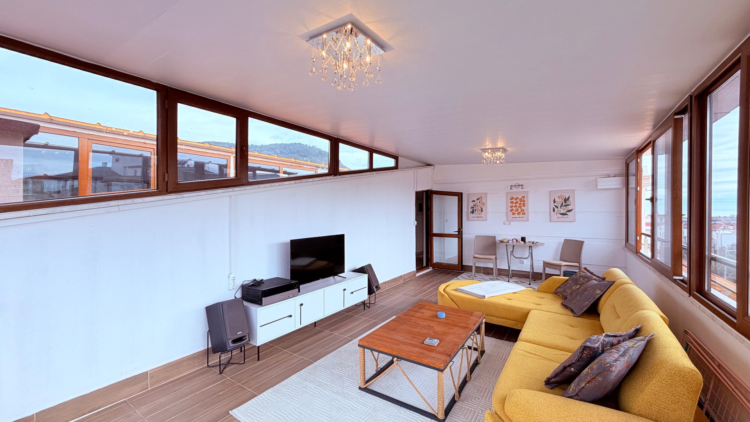 Daire, hem deniz hem de dağ manzarasına sahiptir.