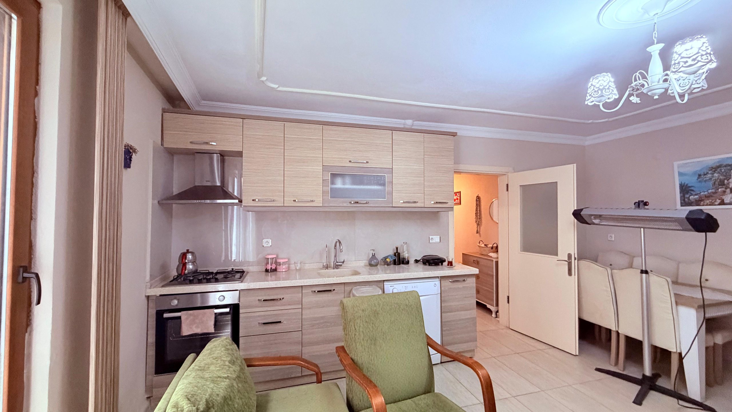 Daire açık mutfaklı olup, 65 m² kullanım alanına sahiptir.