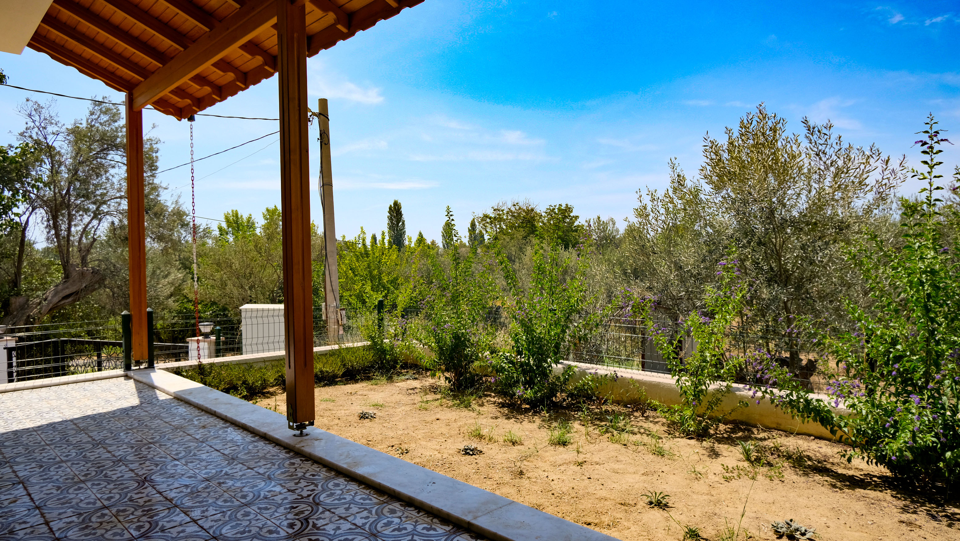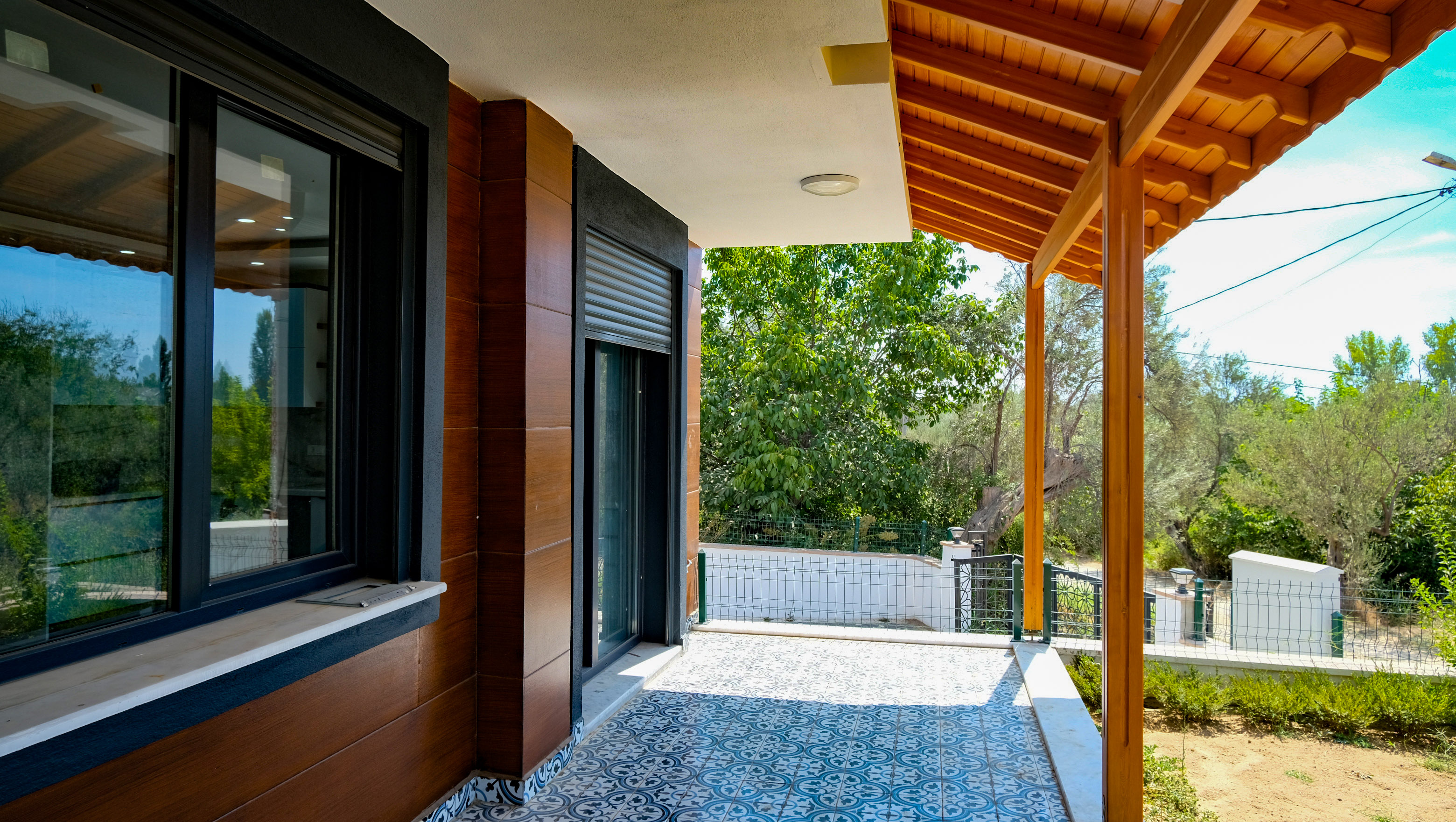 Veranda 20 m² ön bahçe alanına açılmaktadır. Veranda altında bir depolama alanı bulunmaktadır.
